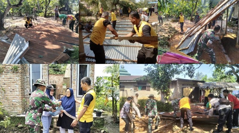 Hingga saat ini personel dibantu warga dan Bhabinkamtibmas, serta Forkopimda, terus memberikan bantuan untuk meringankan warga yang terdampak bencana puting beliung. ( Mabhirink Gutul)