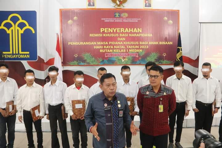 Rimbunneqs.com – Medan – Sebanya 280 orang warga binaan Rutan Kelas I Medan Kanwil Kemenkumham Sumut terima remisi khusus Natal 2023 dan 6 orang diantaranya langsung bebas. Senin (25/12).