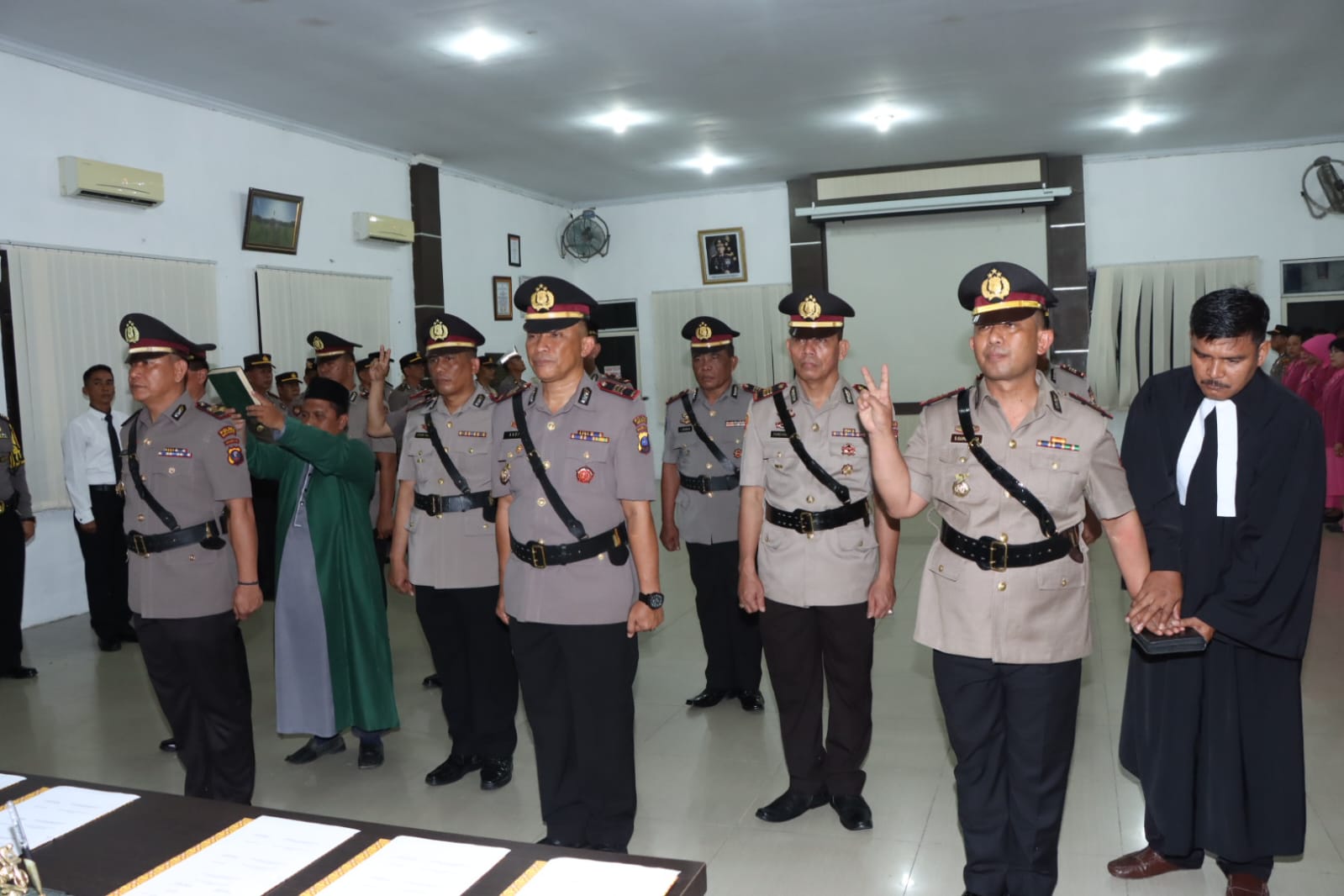 Wakapolres Serdang Bedagai KOMPOL DAMOS C. ARITONANG S.I.K. M.H., Kabag SDM Polres Serdang Bedagai *KOMPOL S. ANAK AMPUN S.H., Kasat Reskrim Polres Serdang Bedagai AKP J.H PANJAITAN, S.Sos., S.H. M.Hum., Kasat Intelkam Polres Serdang Bedagai SISWOYO, Kasat Sabhara Polres Serdang Bedagai AKP SILVESTER BUTAR BUTAR, Para Kapolsek Jajaran Polres Serdang Bedagai, Perwakilan Perwira Polres Serdang Bedagai , Ketua Bhayangkari Cabang Polres Serdang Bedagai Ny. SEPTIA OXY, Pengurus Bhayangkari Cabang Polres Serdang Bedagai Rohaniawan Islam, Ust. HIDAYATULLAH, Rohaniawan Kristen : Pdt. J. SIMARMATA S.Th.