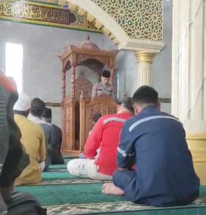 Hari ini, Pukul 12.39 WIB pelaksanaan Salat Jumat di Mesjid Al-Hasanah Pangururan memiliki keistimewaan tersendiri, karena dalam sesi penyampaian Ceramah / Khutbah disampaikan oleh Personil Polres Samosir, Bripda Priyatama Abdillah Harahap anggota Bag Ops Polres Samosir, yang mengambil peran sebagai khatib.