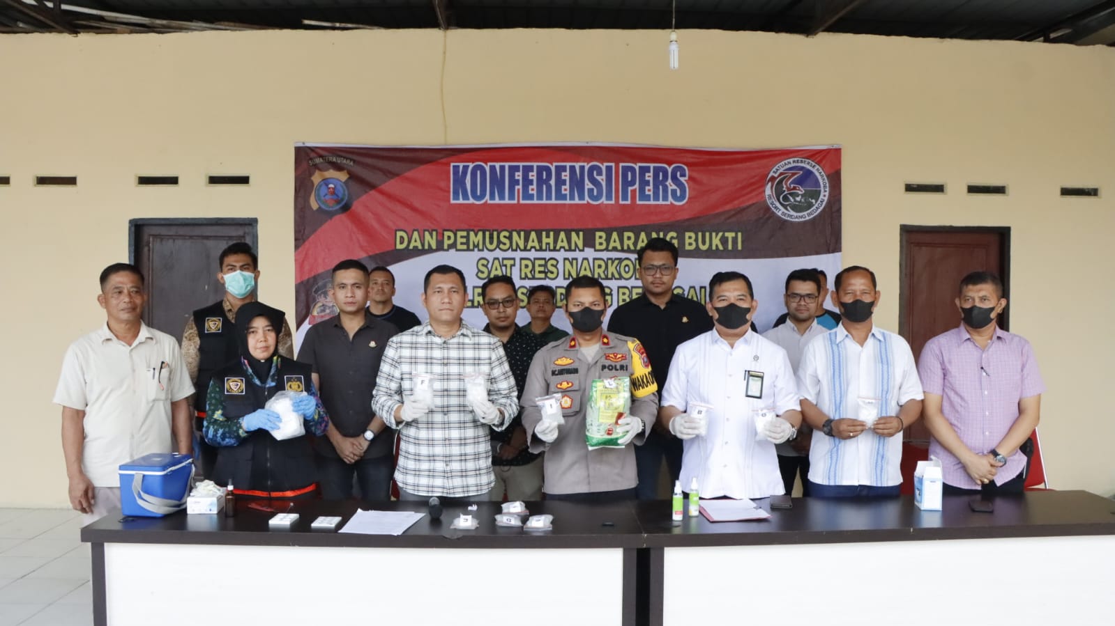 Pemusnahan dipimpin Waka Polres Sergai, Kompol Damos C Aritonang, serta dihadiri Ketua PN Sei Rampah Muhammad Sacral Ritonga, Kasi Pidum Kejari Sergai Dedy Darmo LT Saragih, Tim Labfor Polda Sumut, Kasat Narkoba Polres Sergai AKP Iwan Hermawan dan jajaran, penasehat hukum tersangka Syaiful Iksan, serta Ps Kasi Humas Polres Sergai, Iptu Edward Sidauruk.