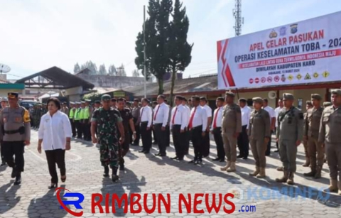 Rimbunnews.com – Kabanjahe, Bupati Karo, Cory Sriwaty Sebayang hadiri Apel Gelar Pasukan Ops Keselamatan Toba 2024 di Mapolres Tanah Karo. Ops Keselamatan ini merupakan Operasi Kepolisian terpusat yang serentak dilaksanakan di seluruh Indonesia, dalam upaya meningkatkan keselamaan berlalu lintas dan menekan angka kecelakaan, khususnya selama bulan Suci Ramadhan 1445 H dan menjelang Hari Raya Idul Fitri. Rabu (13/03/2024).