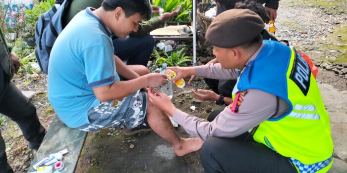 Melihat kejadian tersebut, langsung gerak cepat Aiptu Putra memberikan pertolongan pertama kepada korban.