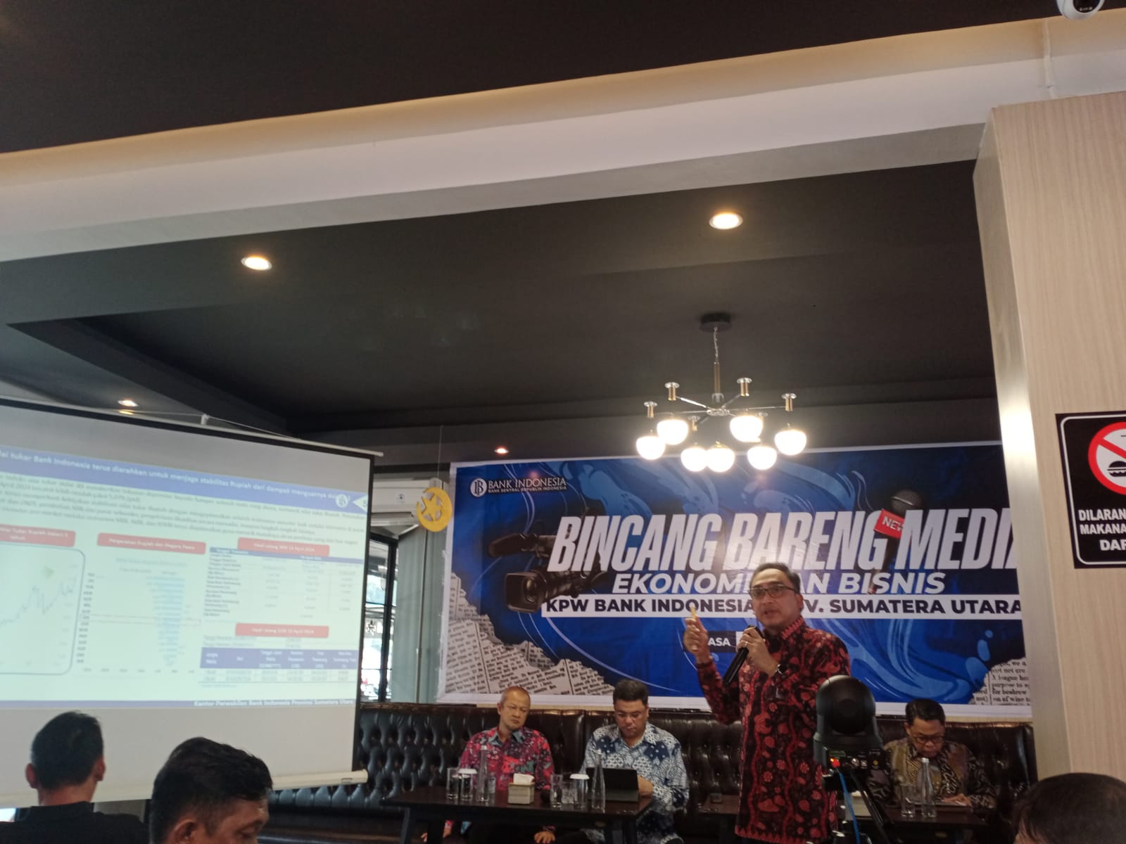 “Kami memperkirakan perekonomian Sumut terakselerasi dan berada di angka 4,5 persen-5,3 persen,” Demikian disampaikan Kepala Perwakilan BI Sumut IGP Wira Kusuma,  pada Bincang Bareng Media  ( BBM ) di cafe Nusa Dua Jalan Putri Hijau  Medan, Selasa, (30/04/2024).
