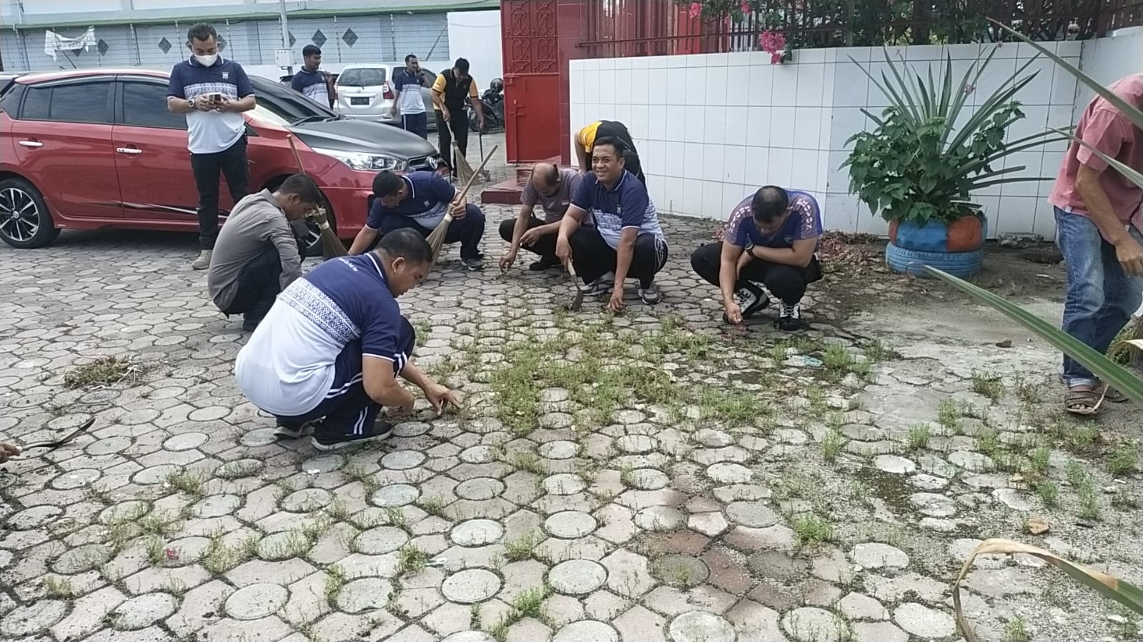 Kegiatan bersih – bersih ini dilakukan secara bersamaan di tiga lokasi rumah ibadah, personil Polresta Deli Serdang yang berjumlah kurang lebih 75 personil di bagi dalam tiga kelompok besar.