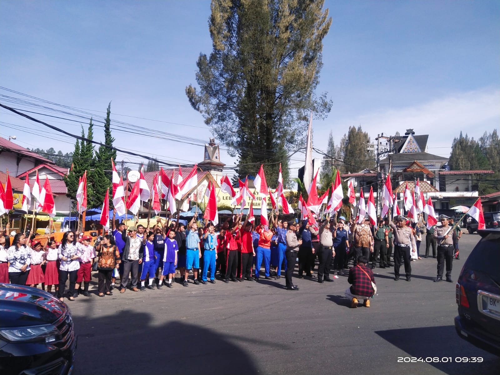 Rimbunnewsa.com – Karo – Dalam rangka menyambut Hari Ulang Tahun Republik Indonesia (HUT RI) ke-79, Polsek Berastagi bekerja sama dengan berbagai elemen masyarakat menggelar kegiatan pembagian bendera merah putih di Tugu Perjuangan, Kecamatan Berastagi, Kabupaten Karo, pada Kamis(01/08/2024) pagi.