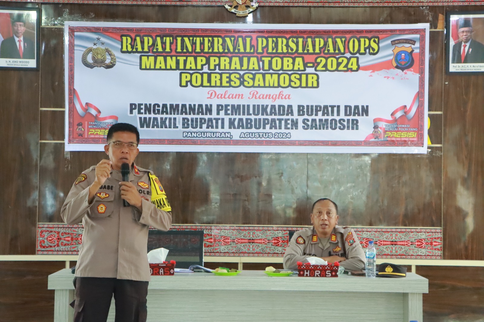Untuk Pelaksanaan Rapat Internal Operasi Mantap Praja 2024 dilaksanakan untuk membahas rencana pengamanan Pemilihan Umum Kepala Daerah (Pemilukada) tahun 2024 di Kabupaten Samosir. Rapat ini berlangsung di Aula Pusuk Buhit Polres Samosir.