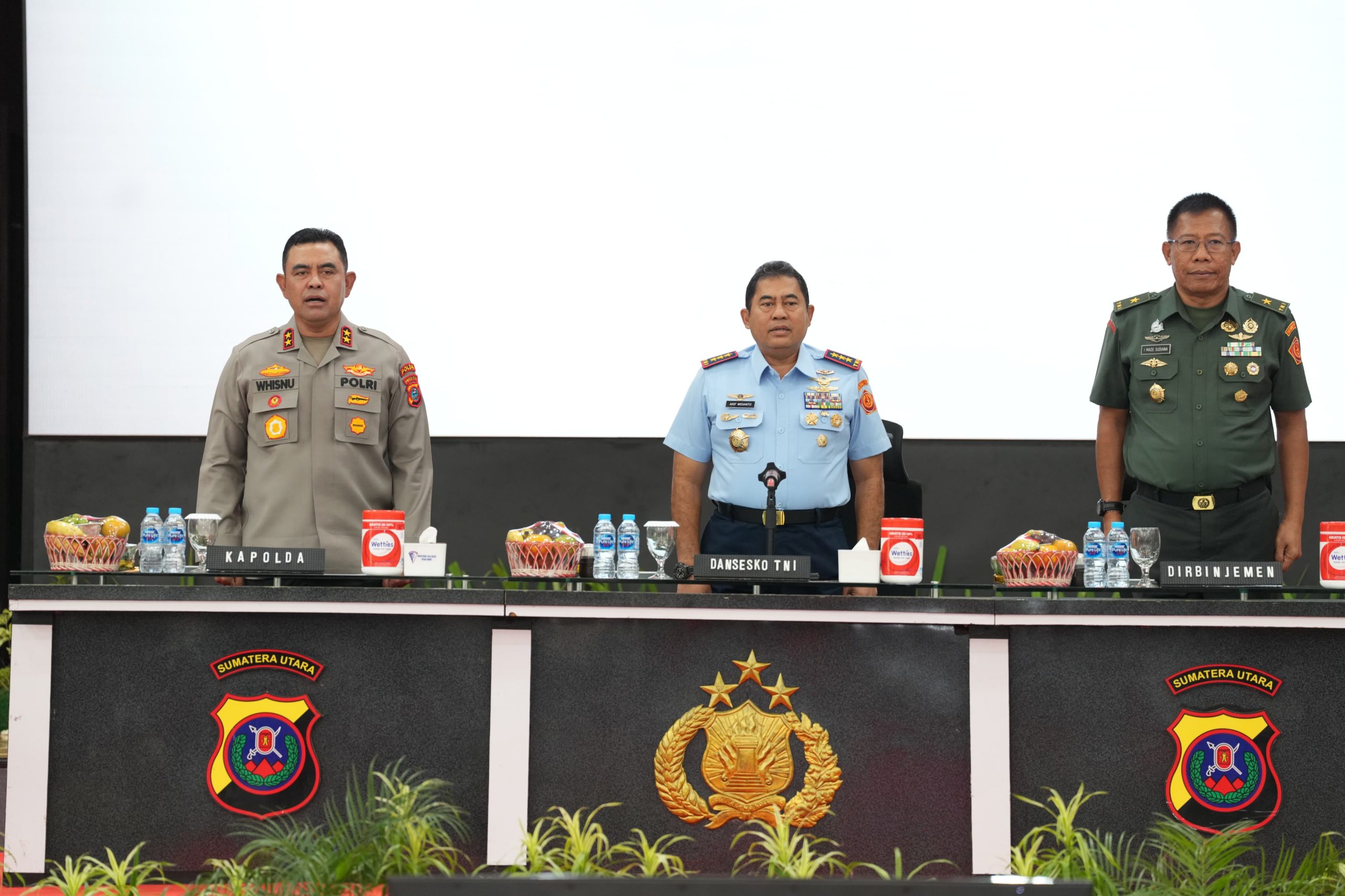 Rimbunnews.com – Medan – Kegiatan pembekalan bagi peserta Pendidikan Reguler (Dikreg) LII Sekolah Staf dan Komando (Sesko) TNI T.A 2024 di Aula Tribrata Mapolda Sumut dihadiri oleh Dansesko TNI Marsekal Madya TNI Arif Widianto, Kapolda Sumut Irjen. Pol. Whisnu Hermawan F., S.IK., M.H., Wakapolda Sumut, serta Pejabat Utama (PJU) Polda Sumut, Rabu (07/08/2024).