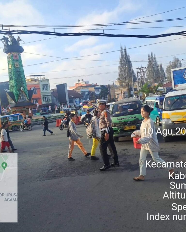 Rimbunnews.com – Karo – Personil Unit Lalu Lintas Polsek Berastagi melaksanakan pengamanan arus lalu lintas di salah satu titik paling padat di kota, yakni Tugu Juang Sabtu(10/8/2024) Pukul 07.00 WIB.
