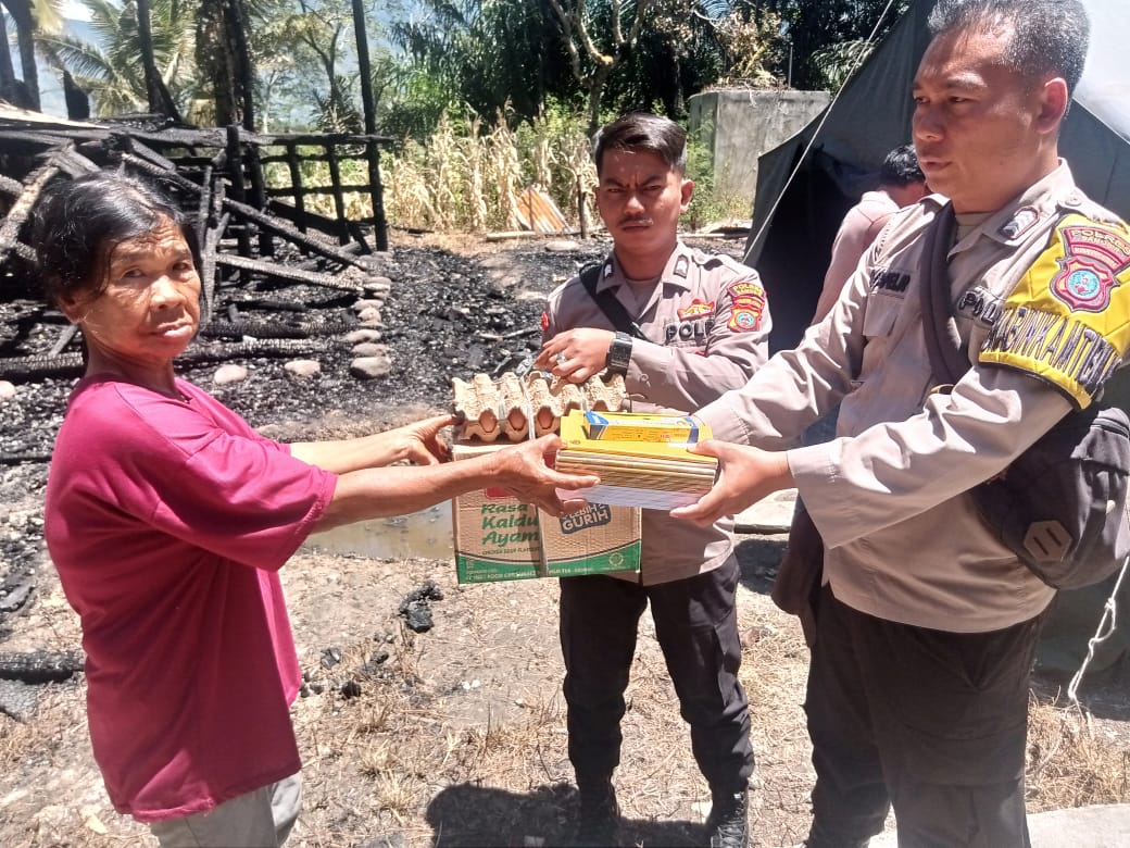 Usai menyerahkan tali asih Bripka M Syafei berpesan Kepada korban musibah kebakaran agar tetap sabar dalam menghadapi ujian ini.