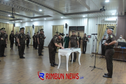 Rimbunnews.com, MEDAN – Kepala Kejaksaan Tinggi Sumatera Utara Idianto, SH,MH melantik dan mengambil sumpah jabatan Aspidsus, 4 Kajari dan Koordinator di aula Sasana Cipta Kerta Lantai 3 Kantor Kejati Sumut, Senin (9/9/2024).
