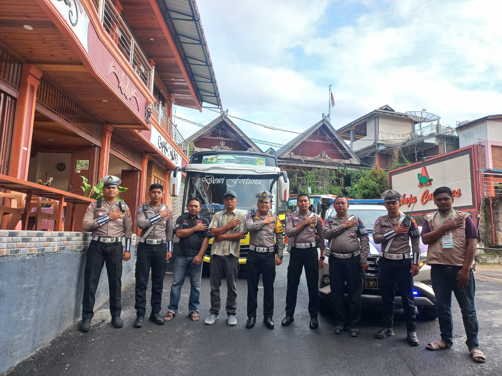 Kasat Lantas Polres Samosir memberikan pengarahan kepada para supir bus atlet, menekankan pentingnya keselamatan dan memastikan bahwa seluruh kontingen berada di dalam bus sebelum berangkat. Dalam pengawalan, petugas diinstruksikan untuk menjaga agar tidak ada kendaraan yang terlepas dari iring-iringan, baik saat perjalanan menuju venue maupun saat kembali ke hotel.