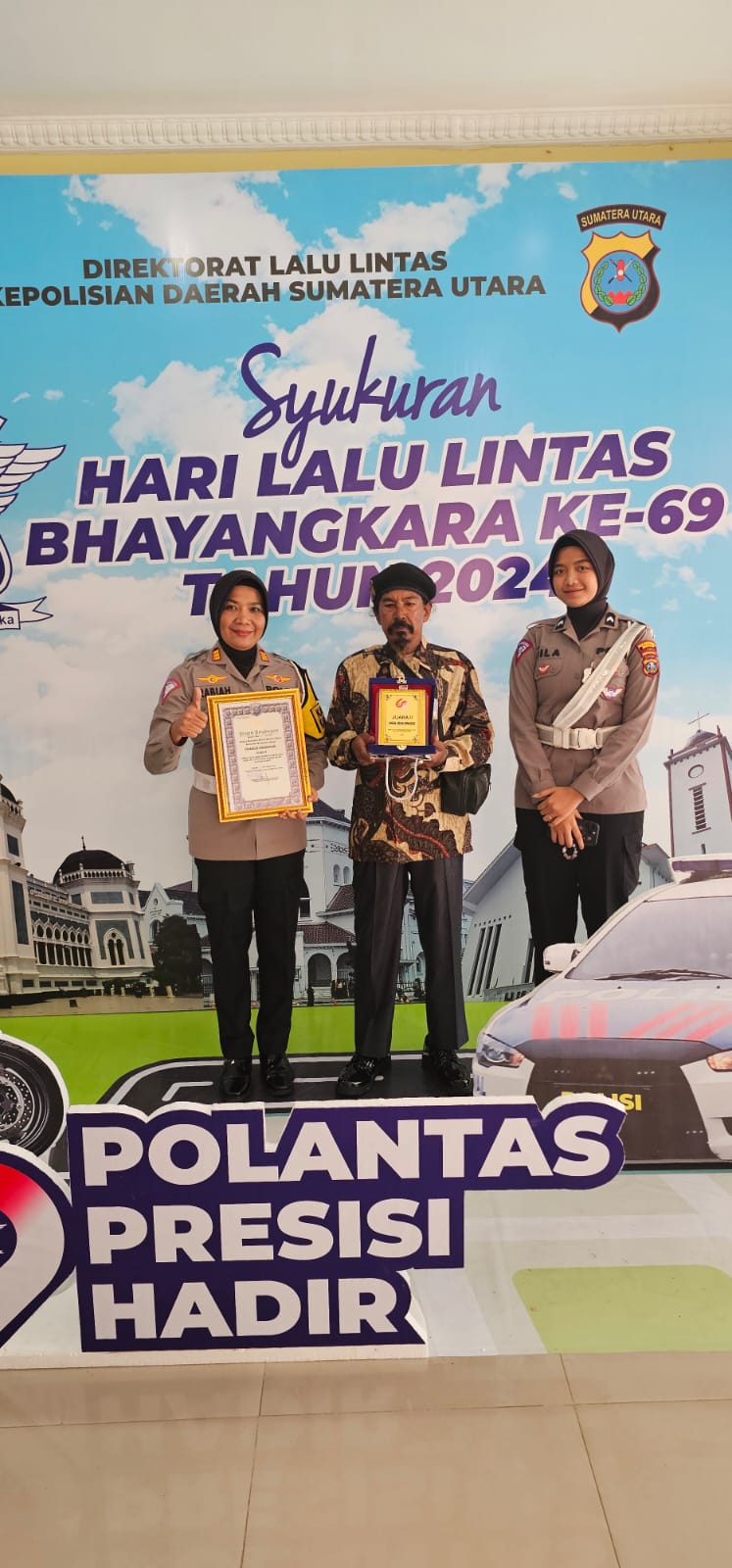 Atas dedikasinya yang luar biasa, Pak Carles Gondrong dinobatkan sebagai juara dalam ajang Local Heroes oleh jajaran Polda Sumatera Utara. Penghargaan ini diterima langsung oleh Pak Carles, didampingi Kasat Lantas Polres Tanah Karo, AKP Rabiah Hasibuan, S.H., pada Rabu (25/09/2024) di Polda Sumut. Penghargaan diserahkan oleh Waka Polda Sumut, Brigjen Pol Rony Samtana.