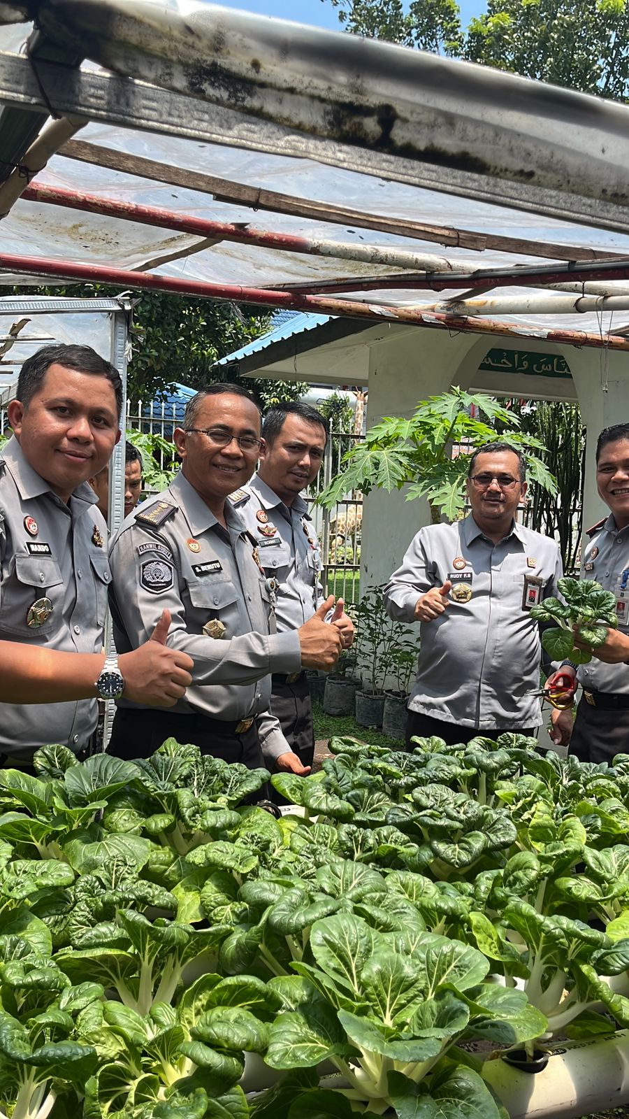 Selanjutnya Kadivpas beserta rombongan berkesempatan melakukan panen sayuran hidroponik hasil pembinaan kemandirian dari Subseksi bimbingan kegiatan kerja (Bimker) Rutan Kelas I Medan. Kadivpas sangat mengapresiasi panen sayuran hidroponik ini, “ini dia hasilnya bahwa rutan juga bisa berdampak dalam mewujudkan program ketahanan pangan Pemasyarakatan saya sangat mengapresiasi langkah-langkah yang dilakukan Rutan untuk bisa memberikan pembinaan kemandirian bagi warga binaan mereka”. Ucap Rudy.