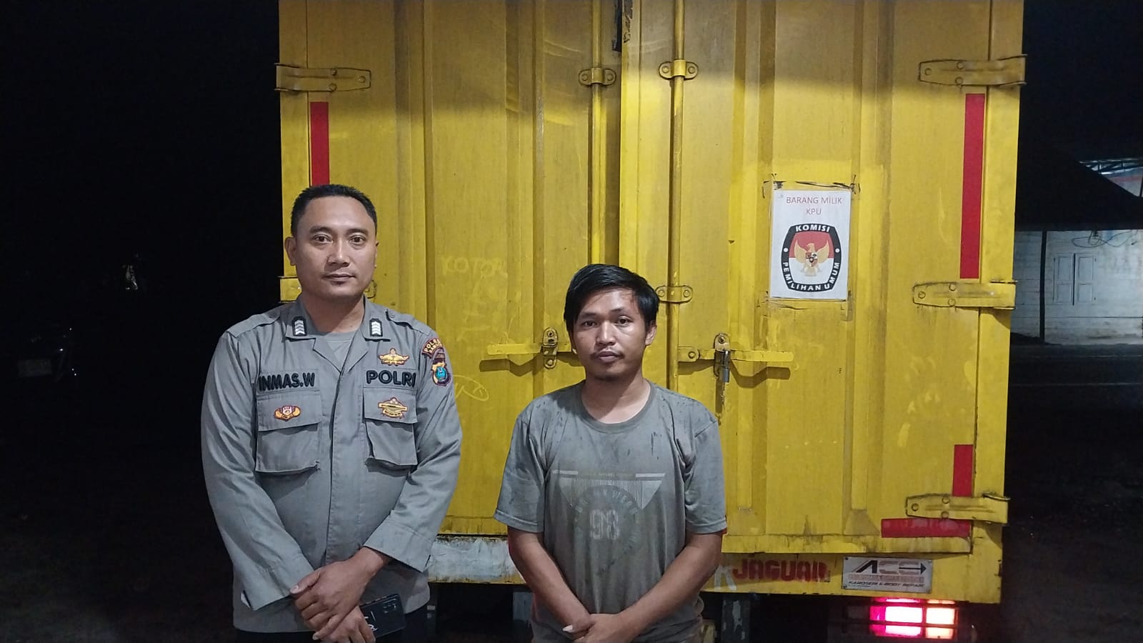 Truk Colt Diesel bernomor polisi B 9467 FXY yang dikemudikan oleh Jajang Mustofa dan Ari Wijaya membawa sampul surat suara sebanyak 3.907 lembar dalam 11 kotak. Setibanya di gudang, Bripka Inmas Wijayanto dari Polres Samosir, bersama petugas KPU dan Bawaslu, memeriksa kondisi segel pada pintu truk. Setelah dipastikan segel dalam keadaan baik, logistik tersebut dipindahkan dari truk ke dalam gudang KPU dengan pengawasan ketat dari aparat.