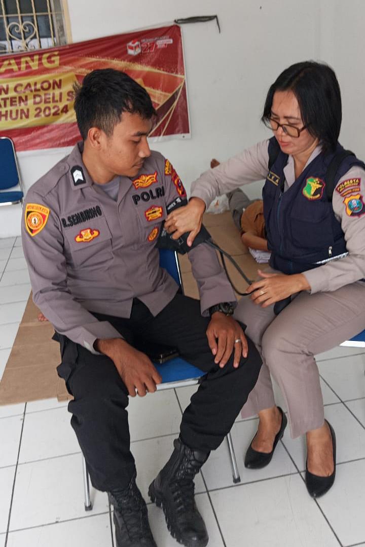 Pengecekan dan pemeriksaan tersebut dilakukan oleh Tim Dokkes Polresta Deli Serdang kepada petugas OMP 2024 dan personil yang bertugas di lapangan yang dipimpin langsung oleh Kasie Dokkes Penata Junita I Banurea.