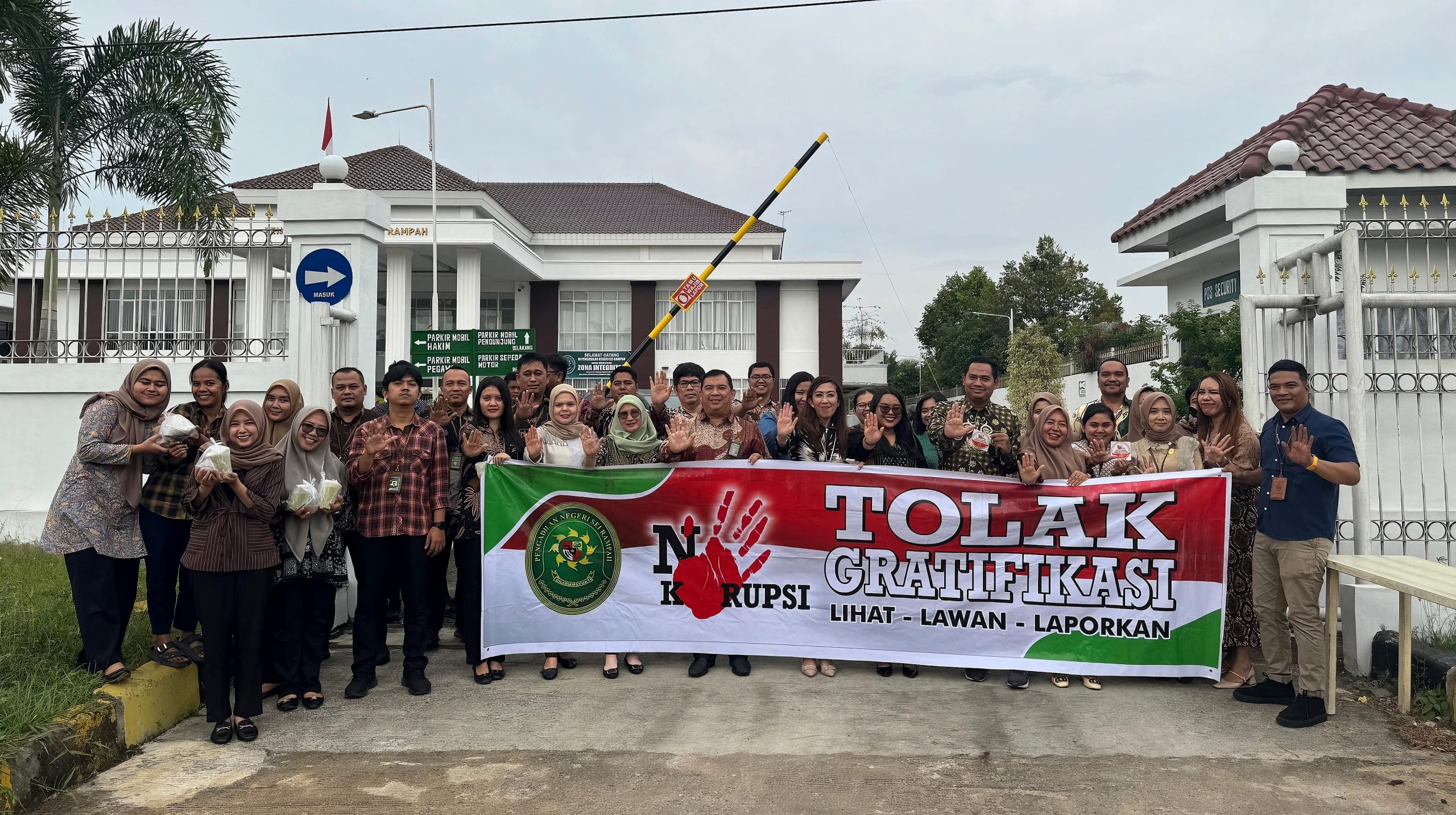 Rimbunnews.com – Sergai – Pengadilan Negeri (PN) Sei Rampah menggelar kampanye anti korupsi dengan membagikan takzil dan stiker anti gratifikasi kepada masyarakat yang melintas di depan Gedung PN Sei Rampah pada Kamis (20/3) sore.