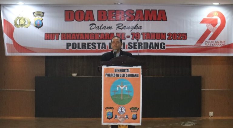 Rimbunnews.com – Deli Serdang – Dalam rangka memperingati Hari Ulang Tahun (HUT) Bhayangkara ke-79, Kepolisian Resor Kota (Polresta) Deli Serdang menggelar kegiatan Doa Bersama yang dilangsungkan serentak pada Senin (30/6/2025), sebagai wujud syukur dan harapan akan pengabdian terbaik bagi bangsa dan negara.