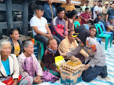 Sebelum penyerahan bantuan, Kapolres Samosir terlebih dahulu menyapa dan memberikan penghiburan kepada para korban.