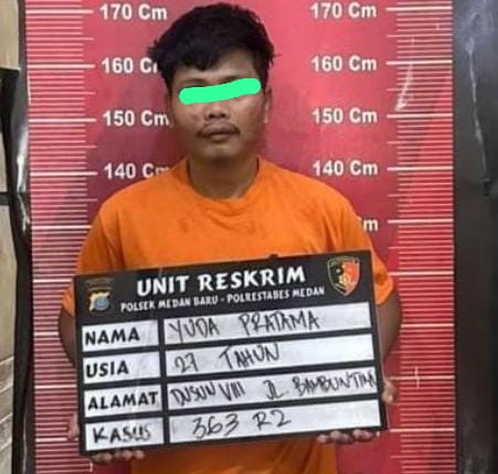 ” Jadi setelah banyaknya laporan diterima oleh Polsek Medan Baru melakukan penyelidikan hingga pada 25 Oktober 2025 sekira pukul 12:00 WIB dan melakukan patroli disekeling komplek Universitas Sumatera Utara hingga akhirnya pada tanggal 30 Oktober 2025 sekira pukul 13:20 WIB terlihat seseorang sedang melakukan aksi pencurian di Fakultas Teknik USU. Kemudian tim yang dipimpin oleh Ipda Fidhial Bhakti SH berhasil meringkus pelaku atas nama Yuda Pratama, ” ucap Iptu P Tambunan.