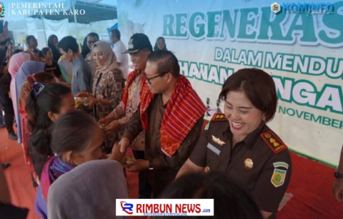 Rimbunnews.com ,Munte – Bupati Karo Brigjen Pol (Purn) Dr. dr. Antonius Ginting, Sp.OG., M.Kes., didampingi Wakil Bupati Karo Komando Tarigan, S.P., memfasilitasi kegiatan Pemberian Hadiah Petani Kreatif dan Lestari di Desa Bandar Meriah, Kecamatan Munte, Sabtu (22/11/2025).