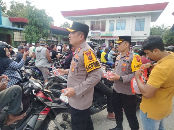 Saat pengecekan terhadap SPBU, Kapolres Binjai Akbp Bambang C. Utomo, S.H., S.I.K., M.Si., juga menyempatkan waktunya untuk membagikan minuman berupa air mineral terhadap masyarakat yang sedang menunggu BBM dari pagi hingga tengah hari untuk mendapatkan bahan bakar minyak.