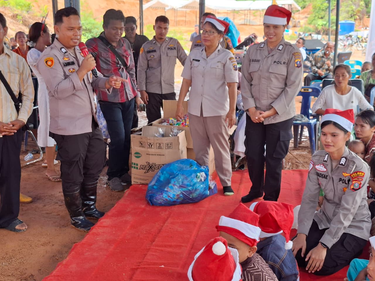 Rimbunnews.com – Tapanuli Tengah – Polres Tapanuli Tengah kembali menunjukkan kepedulian dan kehadirannya di tengah masyarakat terdampak bencana alam dengan memfasilitasi Perayaan Natal bersama para pengungsi di Posko Pengungsian Simpang Sipange, Hutanabolon, Kelurahan Tukka, Kecamatan Tukka, Kabupaten Tapanuli Tengah, Kamis (25/12/2025) pagi.