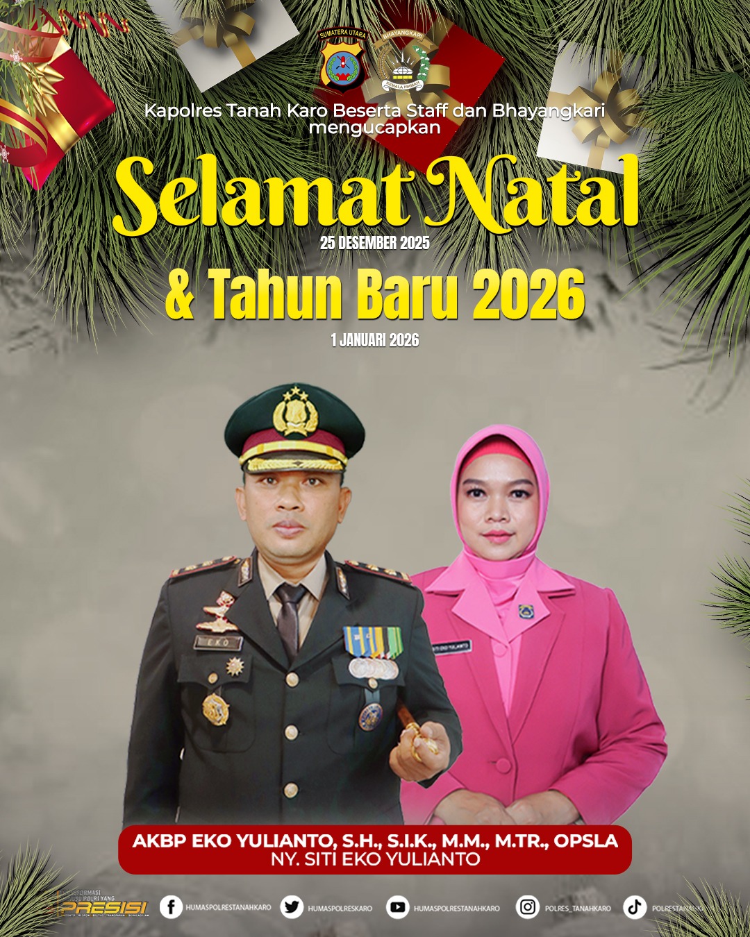 Semoga damai Natal membawa kasih, sukacita, serta harapan baru, dan Tahun Baru menjadi momentum untuk mempererat persatuan, meningkatkan semangat kebersamaan, serta mewujudkan situasi kamtibmas yang aman dan kondusif di Tanah Karo.