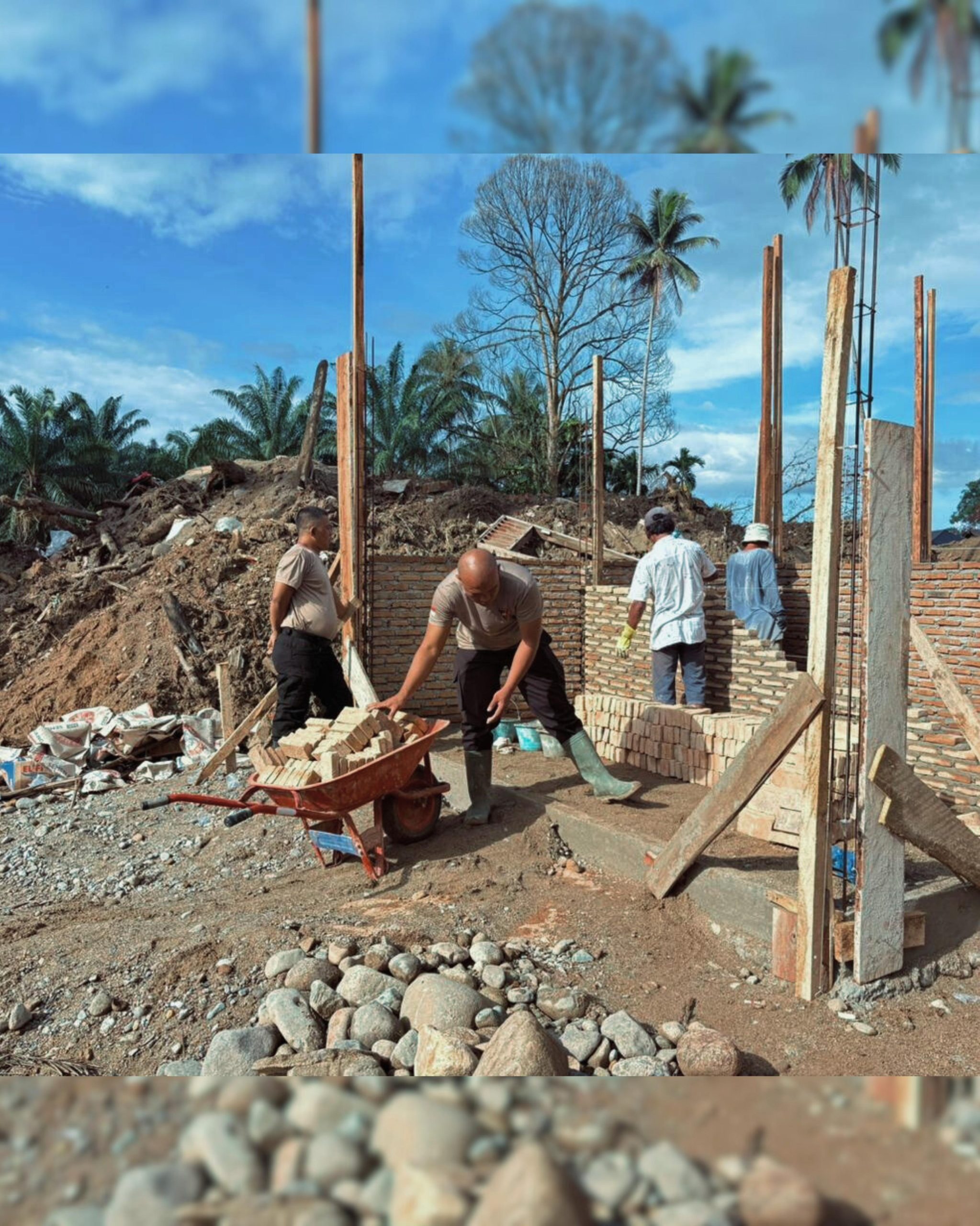 Pembersihan rumah Bapak Sekemendi Manalu dipimpin oleh Aipda Leo Simanjuntak dengan melibatkan 7 personel. Hingga saat ini, proses pembersihan lumpur dan pasir di bagian dalam dan luar rumah telah mencapai sekitar 70 persen, dan akan terus dilanjutkan hingga tuntas.