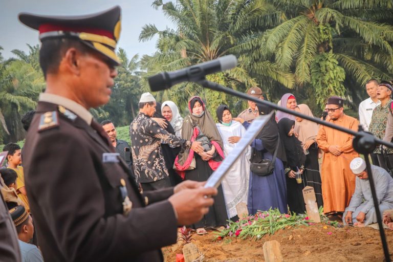 Kompol Budiarto selaku Inspektur upacara menyampaikan, pada hari ini Rabu (07/01/2026) kita berkumpul dalam acara pemakaman Almarhum Purnawirawan Polri Kompol H. Ahmad Yani Siregar, S.H., sebagai wujud penghormatan terakhir kepada Almarhum, seluruh rangkaian kegiatan baik dari pemberangkatan maupun pemakaman Jenazah telah lancar kita laksanakan.