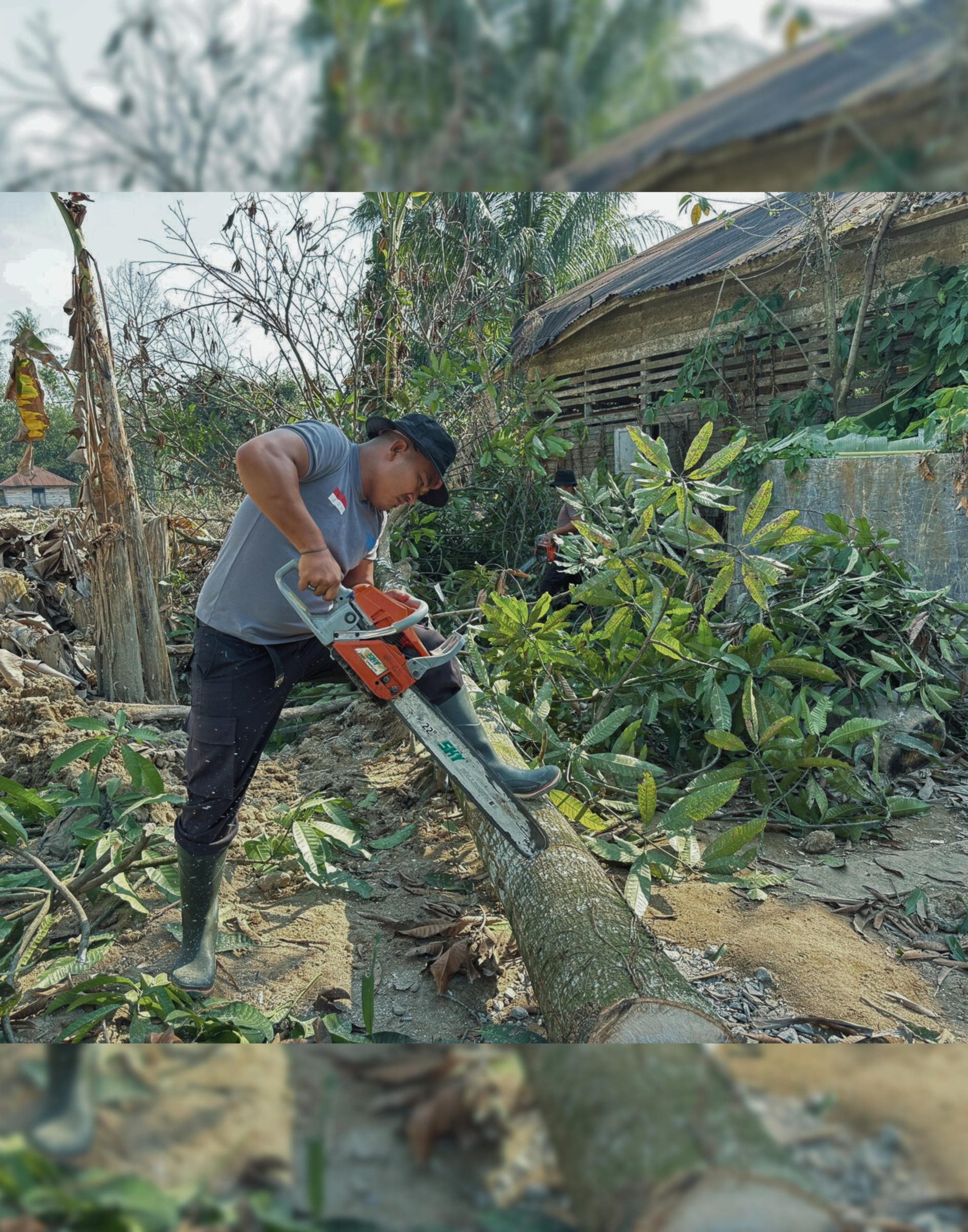 Pada Sabtu, 24 Januari 2026, personel yang tergabung dalam Posko 1 Batalyon C melaksanakan penanganan terhadap pohon mati yang berpotensi membahayakan keselamatan warga. Penebangan dilakukan di sekitar kediaman Bapak Toni Panggabean, Desa Aek Ngadol, sekaligus dilanjutkan dengan pembersihan sisa material pohon agar lingkungan kembali aman, bersih, dan tertata.