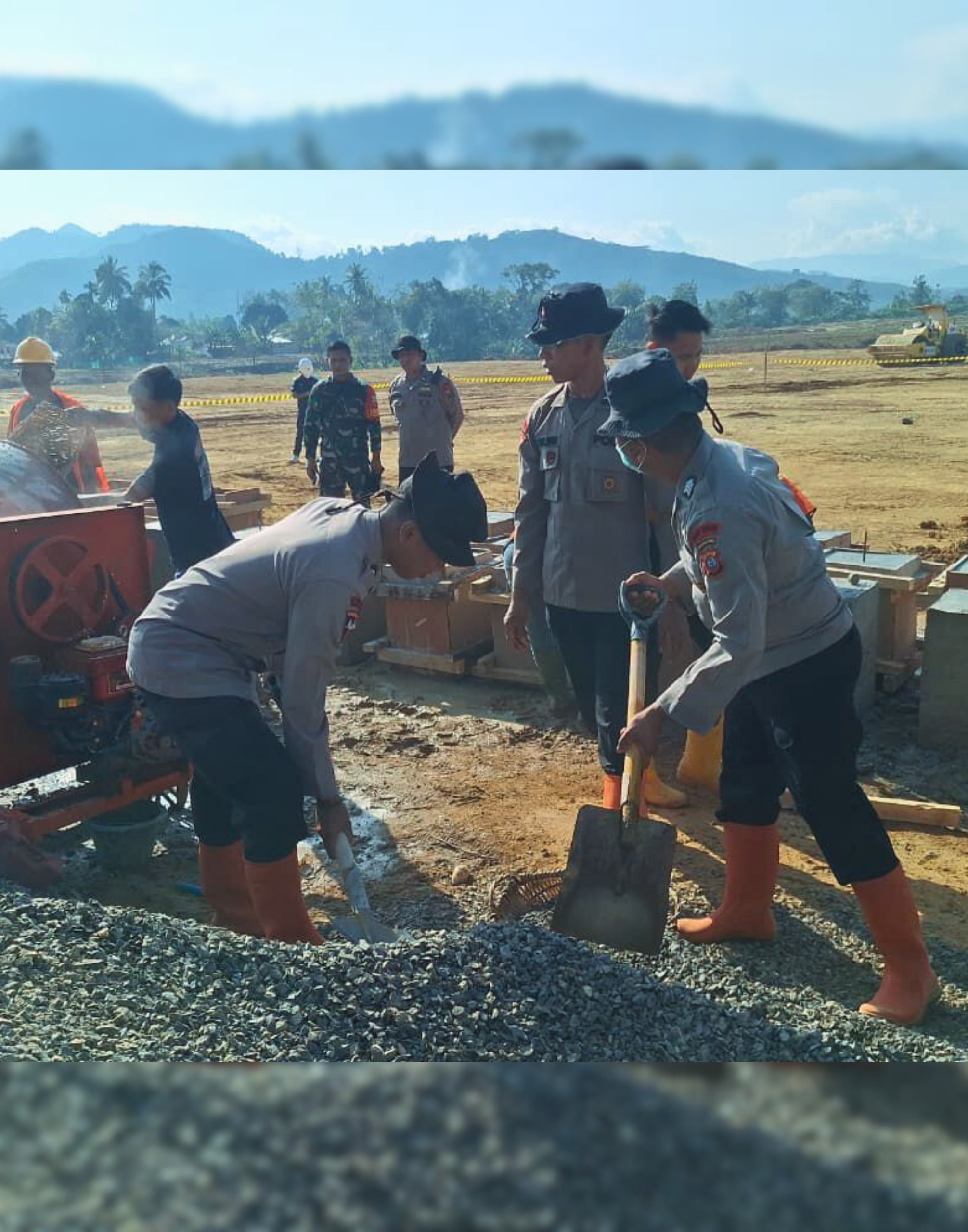Fokus utama kegiatan adalah pembuatan tiang pondasi bangunan hunian tetap sebagai tahap awal penyediaan tempat tinggal yang layak bagi masyarakat terdampak bencana. Dalam pelaksanaannya, 1 regu yang dipimpin oleh DPP Aiptu Widarma, S.H., M.H., melaksanakan pekerjaan teknis pembuatan pondasi dengan menggunakan peralatan seperti mesin molen, sekop, dan angkong.