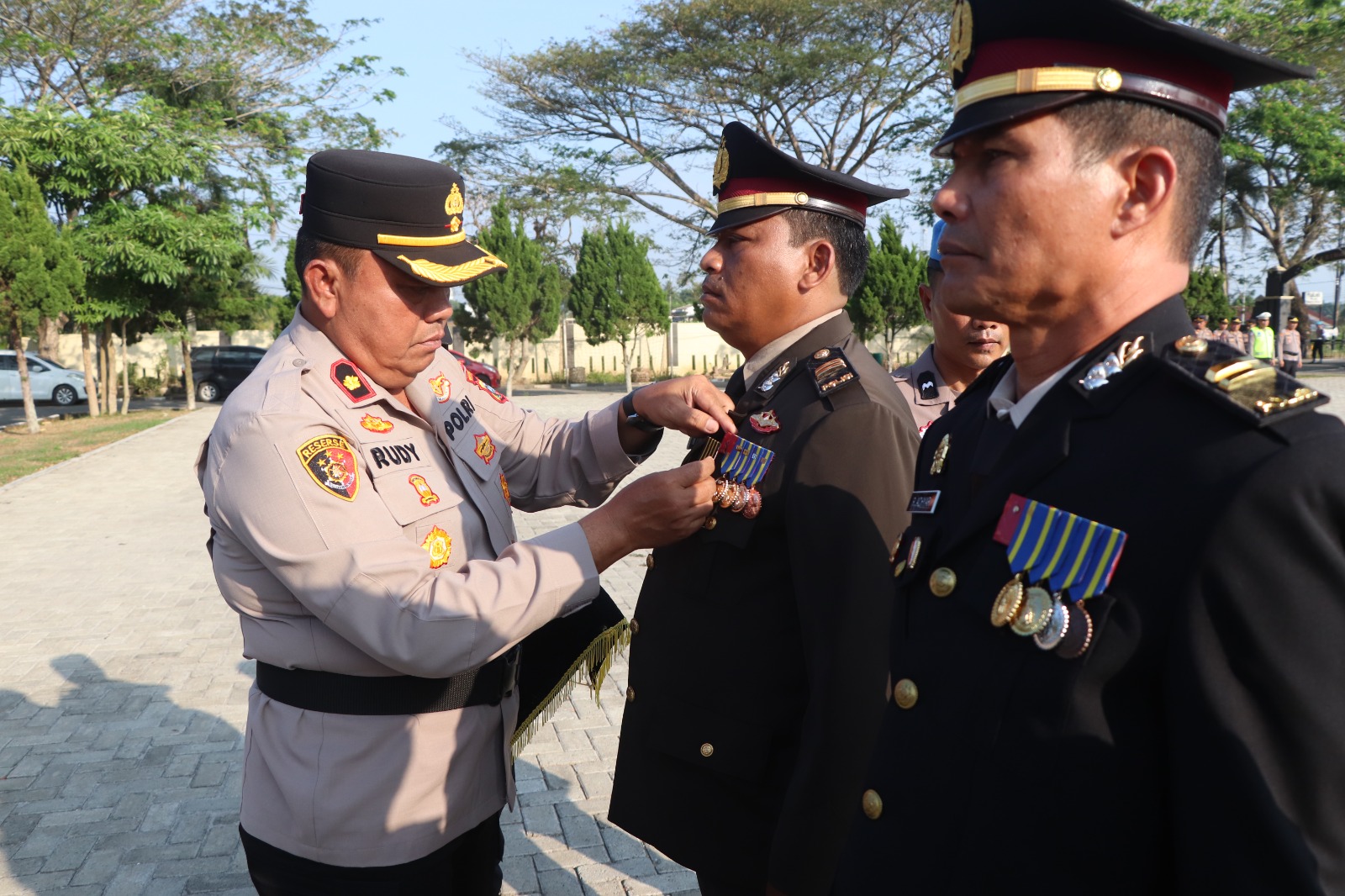 Adapun enam personel yang menerima Satya Lencana Pengabdian masing-masing IPTU Sakban Hasibuan, S.Sos dan IPTU Rudy Achyar untuk masa pengabdian 32 tahun, IPDA Endi Valentino, S.H dan AIPTU Benny Ater Munthe untuk masa pengabdian 24 tahun, serta BRIPTU Andrye Hartanto dan BRIPTU Kokri Gultom untuk masa pengabdian 8 tahun.