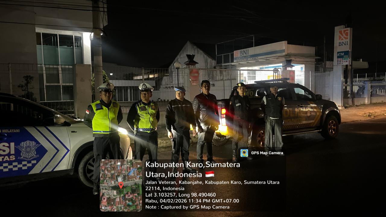 Rimbunnews.com – Karo – Guna menjaga situasi keamanan dan ketertiban masyarakat (kamtibmas), Polres Tanah Karo melaksanakan kegiatan patroli malam pada Rabu(04/02/2026) sekira pukul 23.00 WIB. Patroli tersebut dipimpin oleh Pawas AKP Handel Sembiring, didampingi Padal IPTU C. Sipahutar dan IPDA Katar Sembiring, bersama personel piket fungsi serta piket Sipropam.