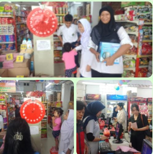 Pasa saat itu seorang ibu rumah tangga sedang memutar routter sekali putar dapat hadiah utama dan sekali lagi mendapatkan Voucher belanja Rp. 100 .000, tampak ibuk itu puas dengan perolehan hadiahnya.