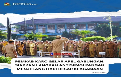Rimbunnews.com KABANJAHE – Bupati Karo, Brigjen Pol (Purn) Dr. dr. Antonius Ginting, Sp.OG., M.Kes, yang diwakili oleh Wakil Bupati Karo, Komando Tarigan, SP., bertindak sebagai pimpinan apel pada Apel Gabungan yang dilaksanakan di halaman Kantor Bupati Karo, pada Senin (09/02/2026).