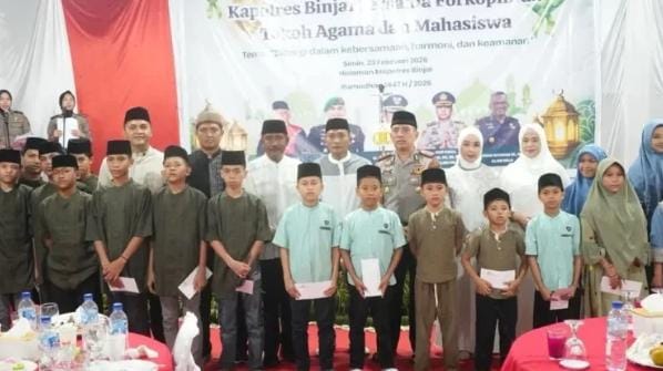 Matapersindonesia.com | Binjai – Menyambut bulan Suci Ramadhan 1447 Hijriah, Kapolres Binjai AKBP Mirzal Maulana, S.I.K., S.H., M.M., M.H., melaksanakan kegiatan Buka Puasa Bersama Forkopimda,  Tokoh Agama dan Mahasiswa,  di halaman Polres Binjai, jalan Sultan Hasanuddin No.1 Binjai., Senin (23/02/2026).