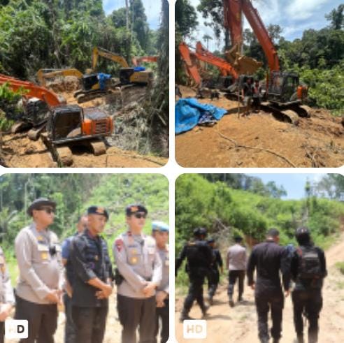 Penindakan yang dilakukan tim gabungan Satuan Brimob dan Direktorat Reserse Kriminal Khusus (Ditreskrimsus) tersebut melibatkan lebih dari 200 personel. Dalam operasi itu, aparat mengamankan 17 orang yang diduga terlibat serta menyita 14 unit alat berat jenis ekskavator, masing-masing 12 unit di lokasi tambang dan dua unit saat dalam perjalanan menuju area penambangan.