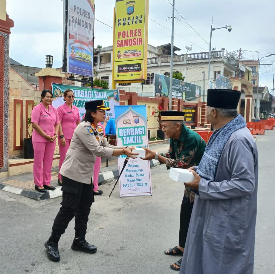 Sementara itu, Kasi Humas Polres Samosir, Radiaman Simarmata, menambahkan bahwa sebanyak 100 bingkisan takjil telah disalurkan dalam kegiatan tersebut.