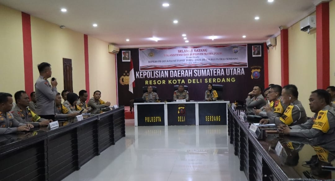 Rimbunnews.com – Deli Serdang – Kapolresta Deli Serdang Kombes Pol Hendria Lesmana, SIK, M. Si, melalui Waka Polresta Deli Serdang AKBP Juliani Prihartini, SIK, MH, menyambut kunjungan kerja (Kunker) Tim Asistensi dan Supervisi Mabes Polri di aula Sat Lantas Polresta Deli Serdang, Sabtu (14/3/2026).