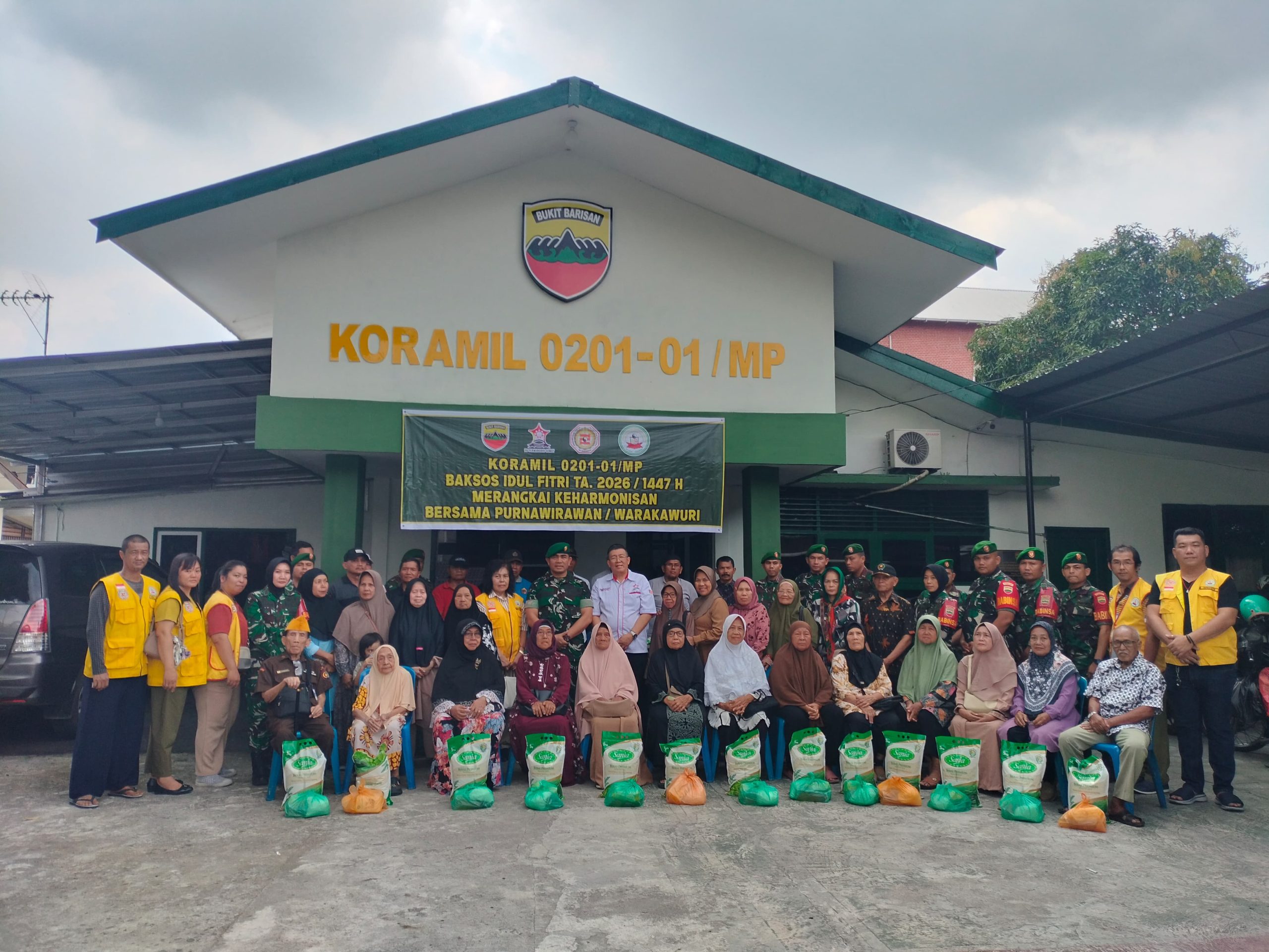 Rimbunnews.com – Medan – Dalam rangka merangkai Keharmonisan Ketua MARTRISIA -67 dam PTITD SI – 67 bersama Koramil 0201 – 01/MP menggelar bakti sosial ( Baksos ) Idul Fitri 1447 H / 2026 kepada Purnawirawan/ Warakawuri di halaman Kantor Koramil Jalan Sengon Sekip Kecamanan Medan Petisah, Senin ( 16/03/2026).