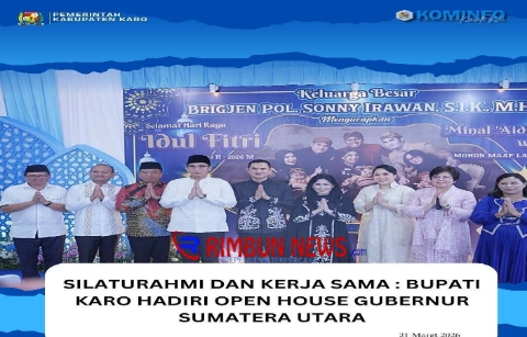 Rimbunnews.com Medan – Bupati Karo, Brigjen Pol (Purn) Dr. dr. Antonius Ginting, Sp. OG., M.Kes, dan Wakil Bupati Karo, Komando Tarigan, SP, menghadiri Acara Open House Gubernur Sumatera Utara yang dilaksanakan pada hari Sabtu, 21 Maret 2026 pukul 14.00 WIB di Aula TRN Rumah Dinas Gubernur Sumatera Utara.