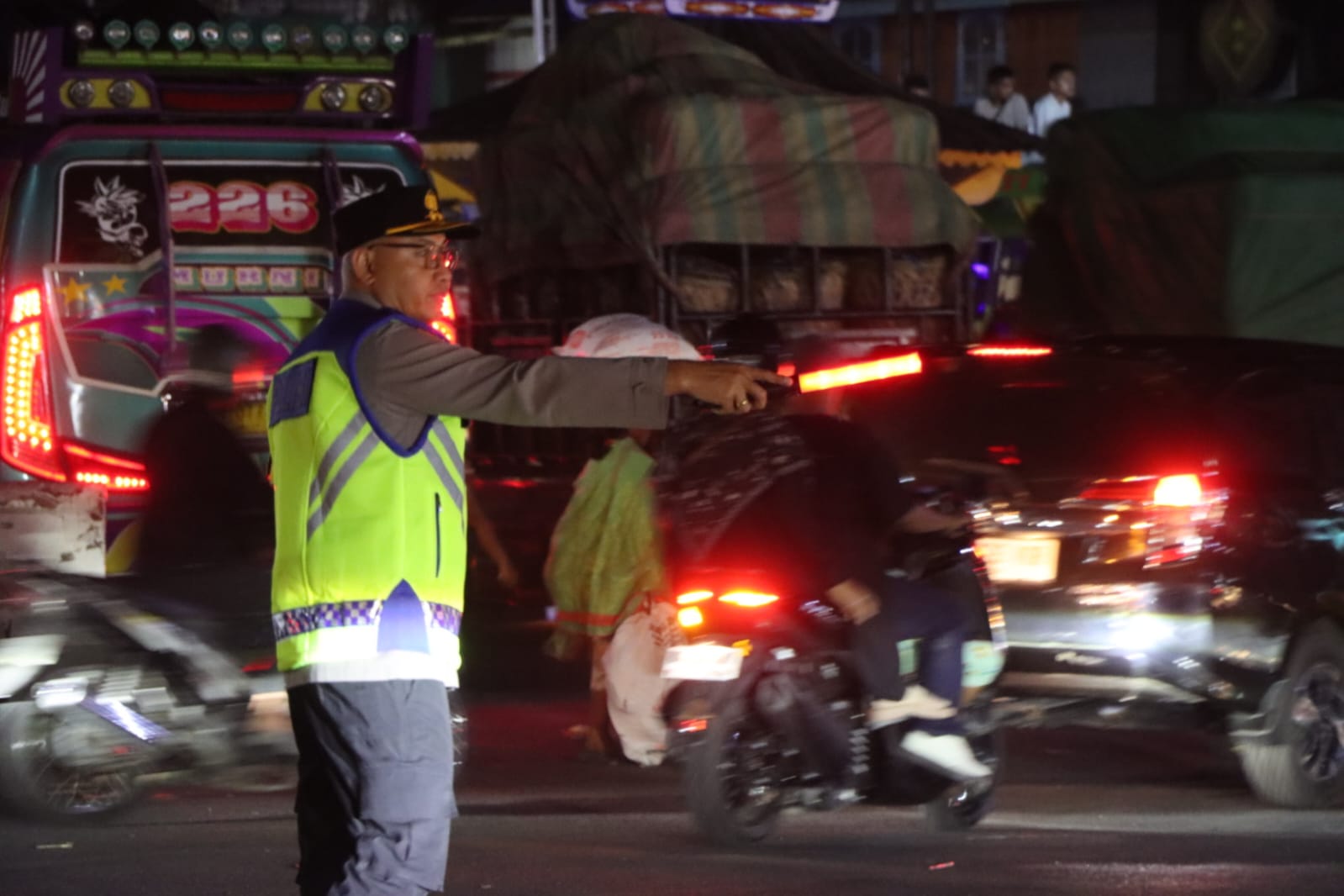 “Untuk malam ini volume kendaraan meningkat cukup signifikan, sehingga terjadi perlambatan di beberapa titik. Namun arus lalu lintas masih tetap berjalan dan dapat dikendalikan oleh personel di lapangan,” ujar Kapolres.
