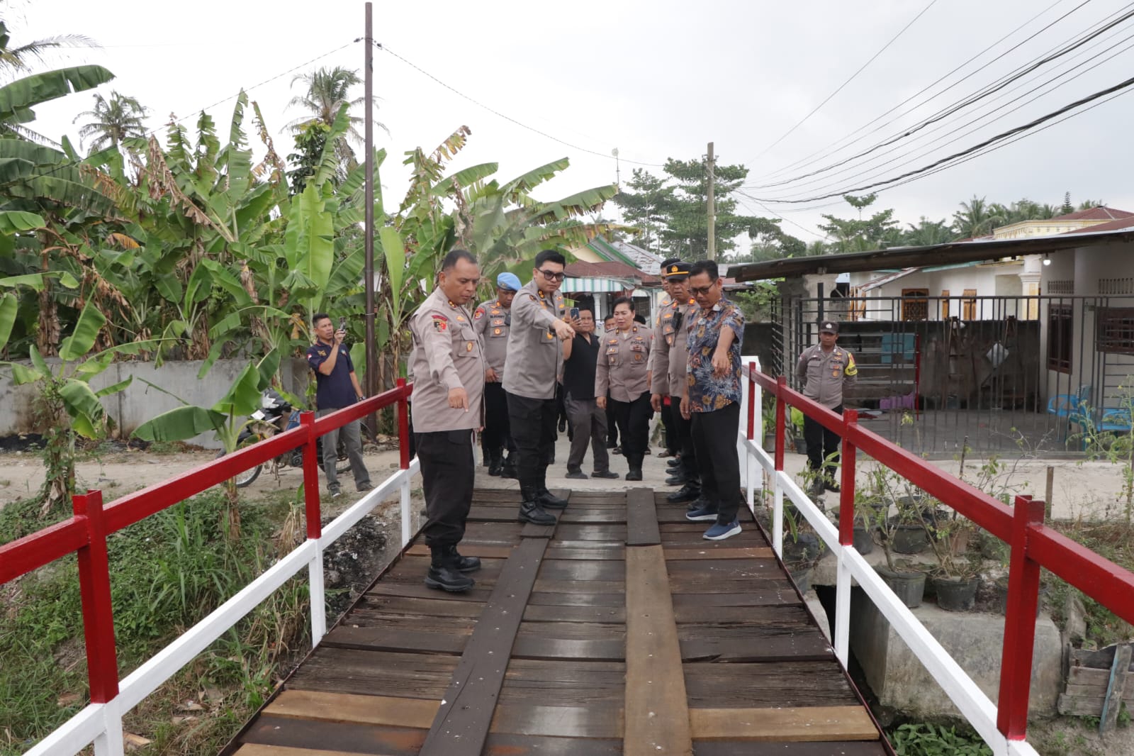 Rimbunnews.com – Sergai – Kabag Binkar Ro SDM Polda Sumut AKBP TAUFIQ TAYIB S.I.K., S.H., M.H beserta Rombongan didampingi Kapolres Serdang Bedagai AKBP Jhon Sitepu, SIK, MH. Dan PJU Polres Sergai melakukan pengecekan lokasi jembatan penghubung antara Dusun II dengan Dusun III Desa Liberia Kec. Teluk Mengkudu Kab. Serdang Bedagai, Sabtu, tanggal 28 Maret 2026 Sekira Pukul 12.10 WIB .