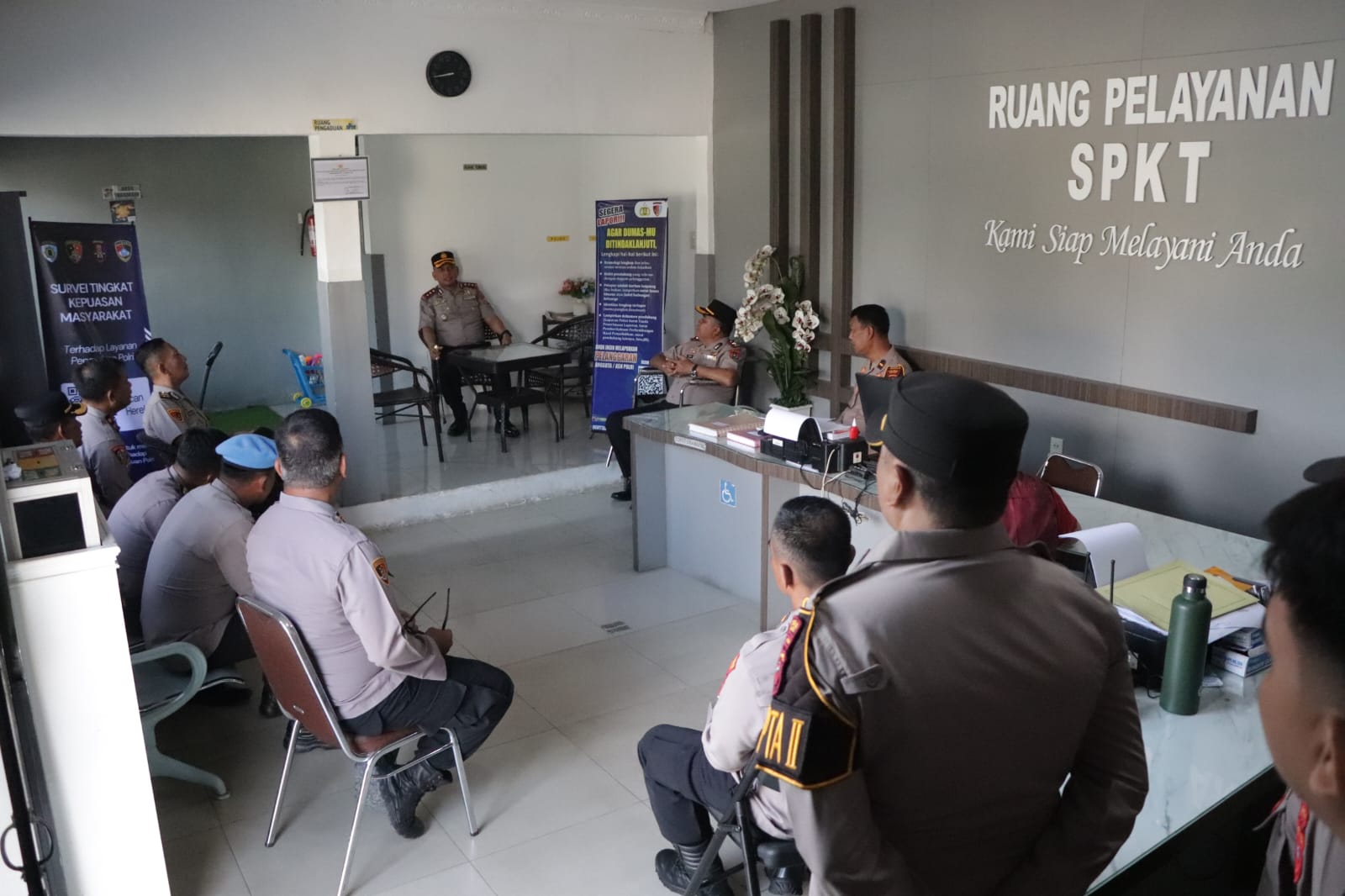 Kegiatan ini mencakup monitoring ruang Call Center 110, Sentra Pelayanan Kepolisian Terpadu (SPKT), serta penjagaan Satuan Samapta.